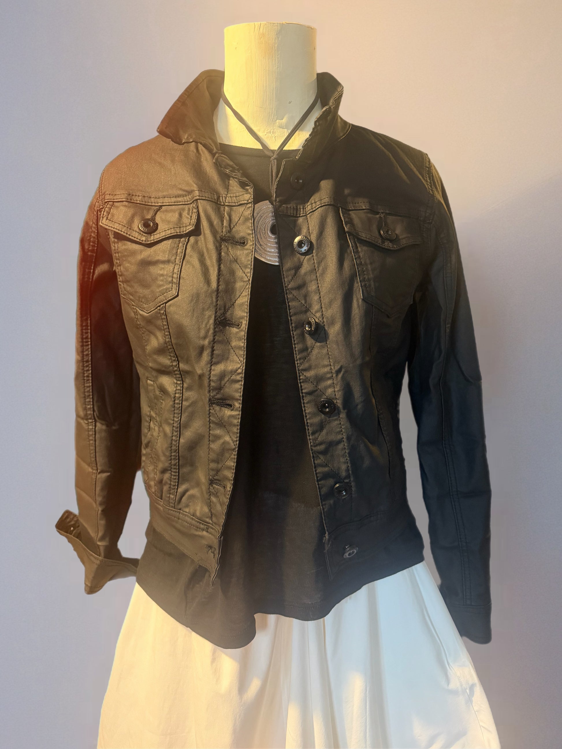 Che tu stia andando al lavoro, a un brunch con le amiche o a una serata in città, questa giacca trucker è la scelta perfetta per esprimere il tuo stile personale con sicurezza.